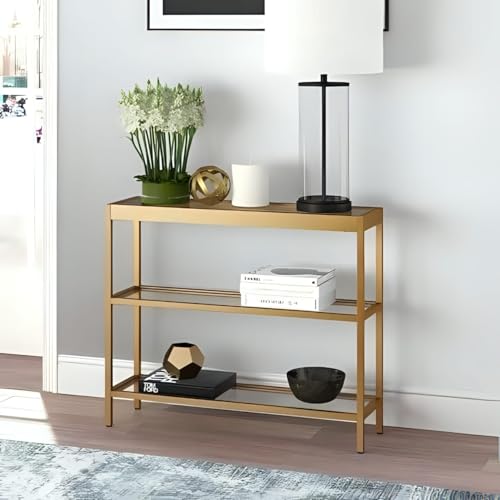 AR Corner - طاولة كونسول بإطار من الفولاذ من ايه ار كورنر، طول 35 سم × عرض 1.10 متر×ارتفاع 90 سم، لون ذهبي /شفاف، موديل M0267