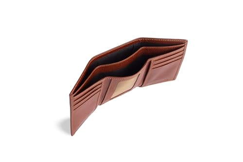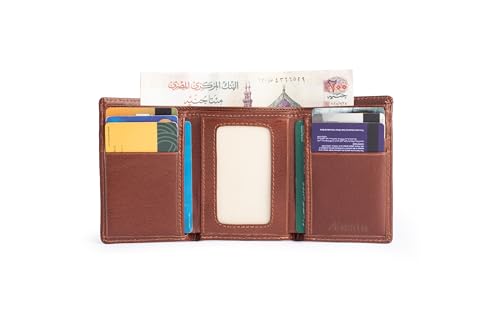 Ar Supply - محفظة رفيعة قابلة للطي ثلاثية الطي للرجال من ايه ار جين - جلد بقر طبيعي 100% - 9 فتحات للبطاقات مع نافذة لبطاقة الهوية - مقصورات عملات مزدوجة - تصميم صغير الحجم - جلد اسود كلاسيكي مصنوع يدويًا (هافان)