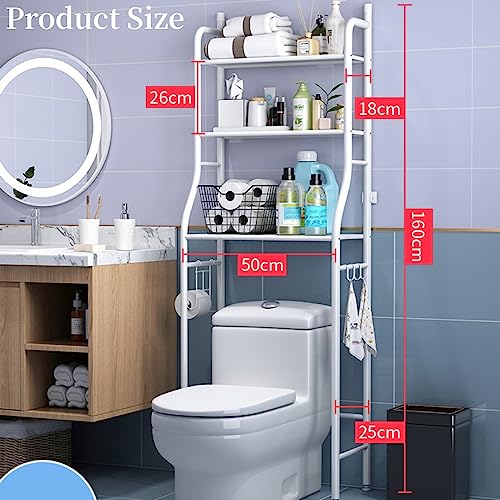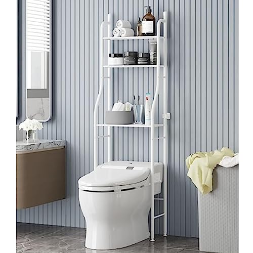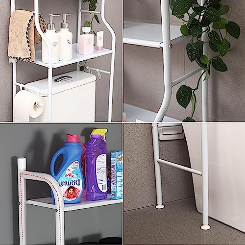 Arabest - حامل موفر للمساحة للحمام من 3 طوابق ارابيست يثبت فوق التواليت أو في الزاوية الغسالة قائم بذاته لتنظيم وتخزين مستلزمات الحمام والغسيل بقضيب تعليق أبيض بلاستيك