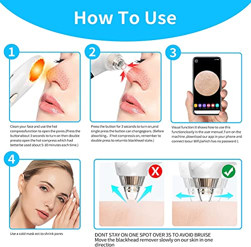 - 【خدمة ودية ونصائح ودية】: مع مستوى شفط معقول، لا تضعه في مكان ثابت لأكثر من 3 ثوان، تحرك عكس اتجاه نمو المسام. إذا كان لديك أي أسئلة، يرجى عدم التردد في الاتصال بنا! سنحل مشاكلك في غضون 24 ساعة.
