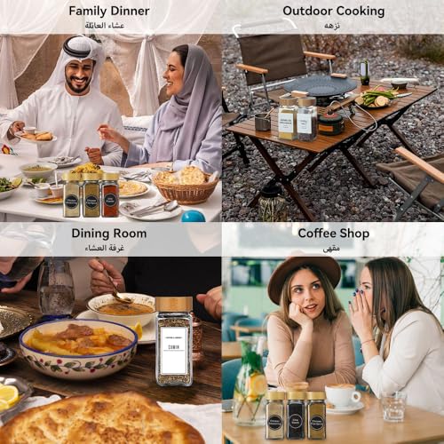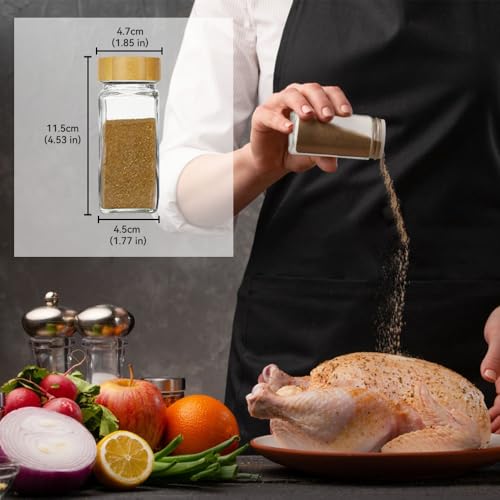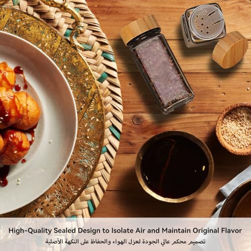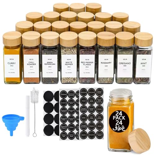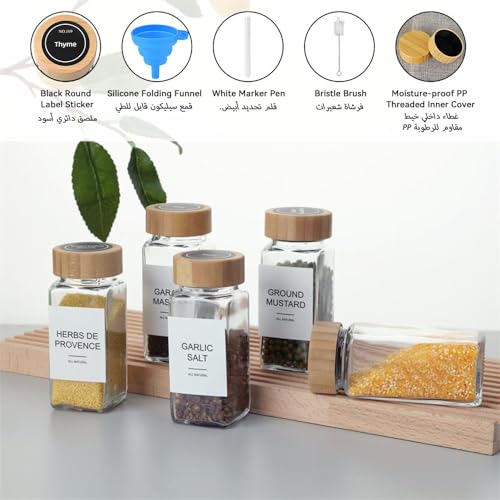 Arabest - ارابيست برطمانات توابل زجاجية مع اغطية من الخيزران بسعة 24.120 مل ملصقات بتصميم بسيط لبيت المزرعة قلم ماركر قمع قابل للطي زجاجات تخزين التوابل لرف والخزانة والادراج