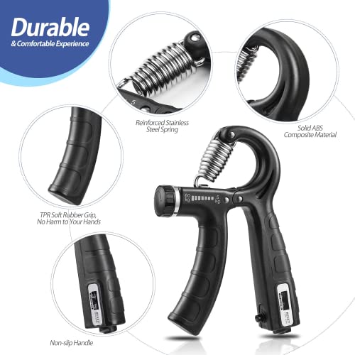 - 💪【مقاومة سهلة للتعديل】يمكنك اختيار الكثافة المناسبة بسهولة عن طريق تدوير مقبض مقوي اليد. يمكن تعديله من 5 كجم إلى 60 كجم لتلبية احتياجاتك. يناسب التمرين بمقاومات مختلفة المستخدمين من أي عمر والمبتدئين والنساء والرجال.