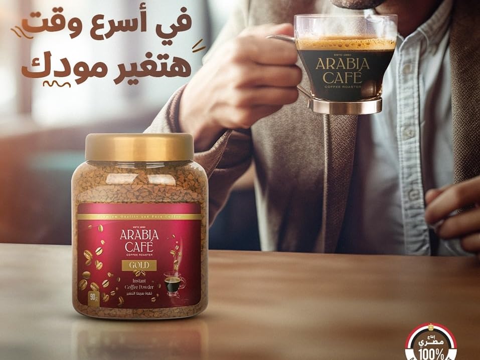 Arabia Café - قهوة سريعة التحضير من ارابيا كافيه في برطمان بلون ذهبي، 90 جرام