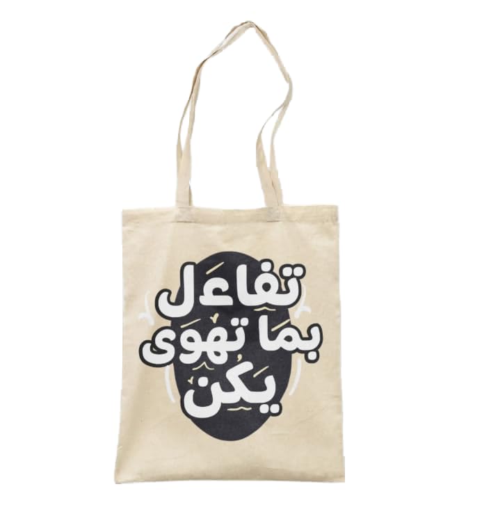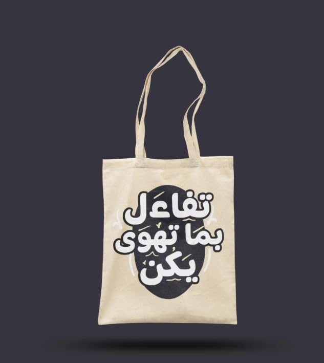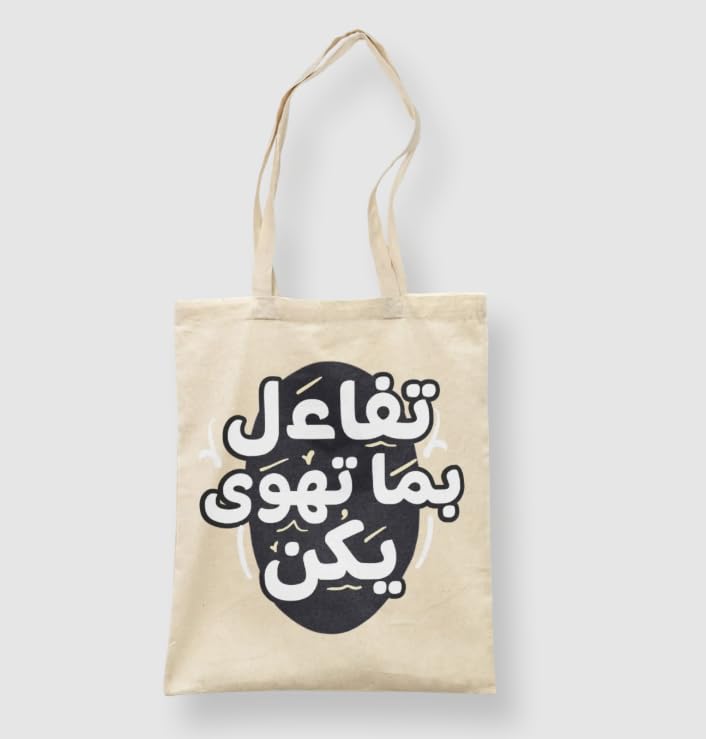 Generic - شنطة يد كبيرة توت من القماش بتصميم الخط العربي مصنوعة من القطن الطبيعي وحمالات كتف