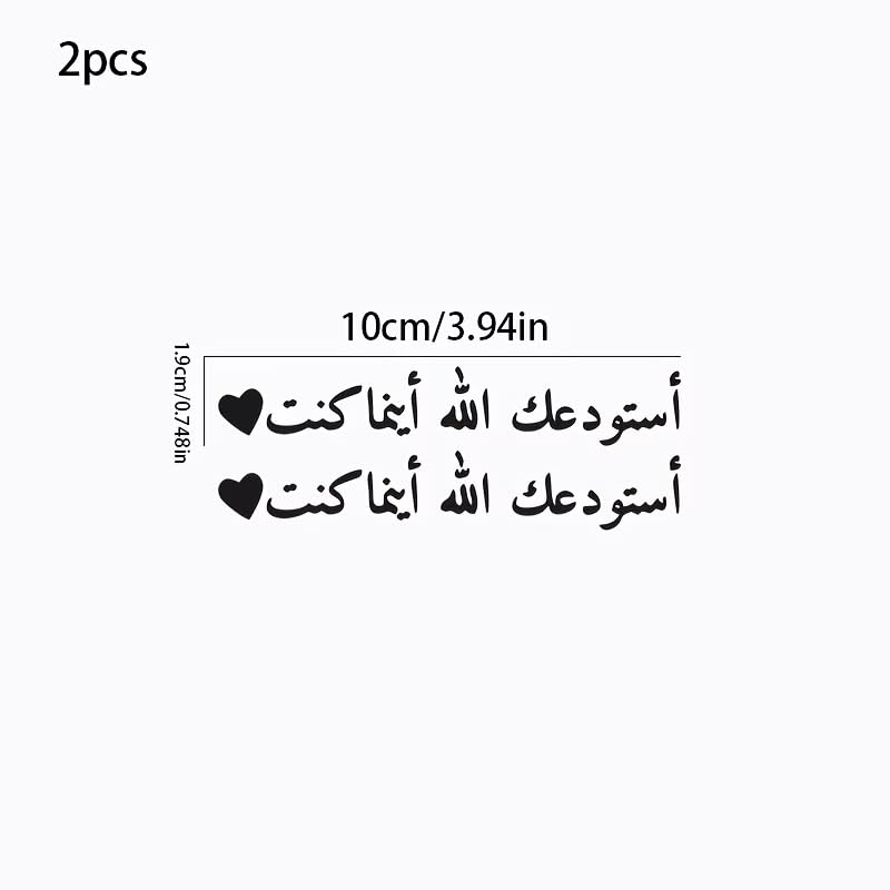 Generic - ملصق سيارة بالخط العربي، أسودعك الله أينما كنت مع قلب، 2 قطعة، 10 سم × 2 سم، أسود
