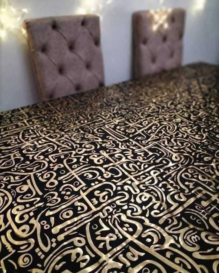 - يتميز بتصميم الخط العربي الذهبي الراقي على قماش الهامر الأسود الفاخر، مما يمنحكِ قطعة "تحفة" ديكورية تزيد من فخامة غرفة المعيشة بأسلوب راقٍ ومميز.