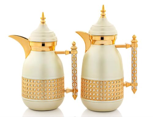 Generic - ترمس حراري للقهوة العربية بلمسة نهائية ذهبية وكريمية، تصميم دلة تقليدي مع قاعدة شبكية مزخرفة، 0.7 لتر و1 لتر، قطعتين