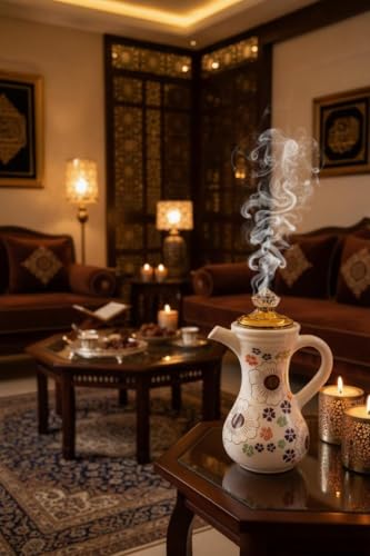 - ✅【تصميم تراثي أصيل】تتمتع المبخرة بشكل دلة عربية تقليدية مستوحاة من الفن التراثي، حيث يجمع التصميم بين الطابع الكلاسيكي والأناقة العصرية، مما يمنح المجالس والطاولات لمسة ثقافية جذابة، ويعكس جمال الحضارة العربية في كل تفاصيل المبخرة، لتكون قطعة جمالية عملية تضيف دفء وأناقة على أي مساحة تستخدم فيها بشكل يومي أو احتفالي. 🏺