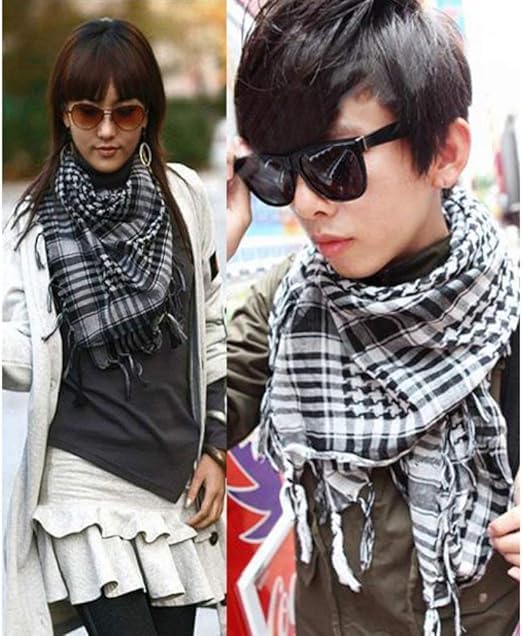 Generic - سكارف كوفية عربية مع مربعين، اسود وابيض، للجنسين