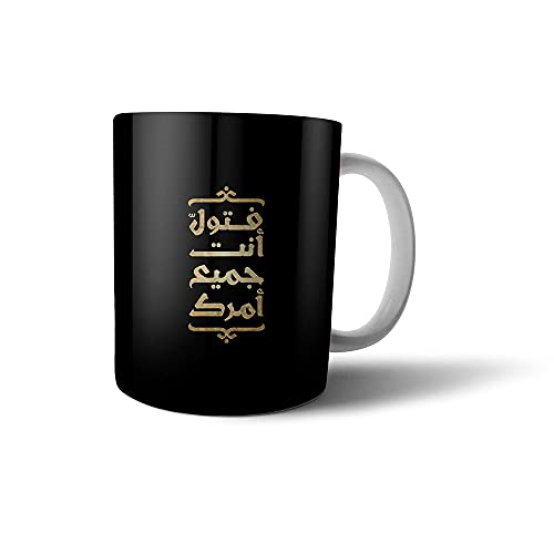 Other - مج سيراميك مطبوع بعبارة عربية - لون أسود وذهبي