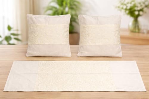 - مجموعة كاملة متناسقة من 3 قطع: يتضمن مفرش طاولة واحد ومخدتين متطابقتين، مما يوفر حلاً متوازنًا وجاهزًا تمامًا للديكور لغرف المعيشة أو مناطق الطعام أو المناسبات الخاصة.