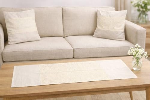 - حجم مثالي لسيناريوهات استخدام متعددة: يبلغ مقاس مفرش الطاولة 1.50 م × 50 سم، مثالي لترابيزات تناول الطعام وطاولات الكونسول، بينما يبلغ مقاس المخدات 45 × 45 سم، مناسب للكنب والكراسي والمقاعد الديكورية.