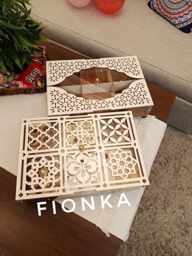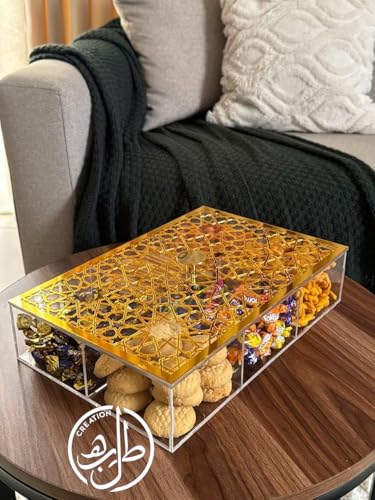 Generic - صندوق تخزين عربي مع غطاء ذهبي مزخرف بنمط ارابيسك، مقاس 36 × 24 سم، يحتوي على 6 مساحات تخزين للحلويات والوجبات الخفيفة