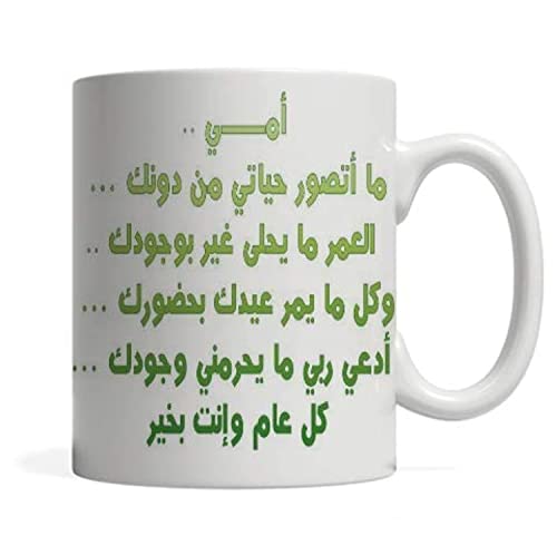 Generic - مج سيراميك ابيض مكتوب عليه نص عربي للام، من بي اتش
