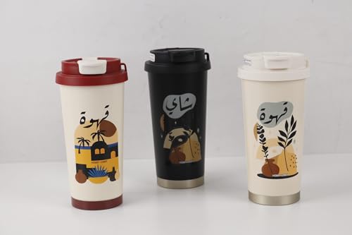 Generic - مج حراري عربي، ٥٠٠ مل، تصميم فني مميز، مع غطاء محكم