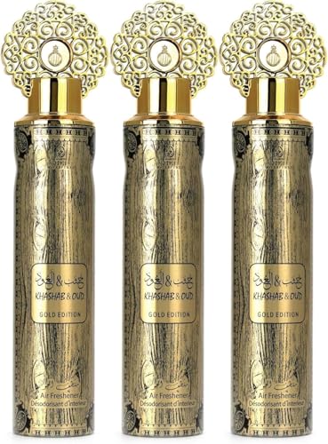 MY PERFUMES - معطر جو خشاب وعود اصدار ذهبي من مجموعة عربيات، 300 مل، عبوة من 3 قطع، صنع في الإمارات العربية المتحدة