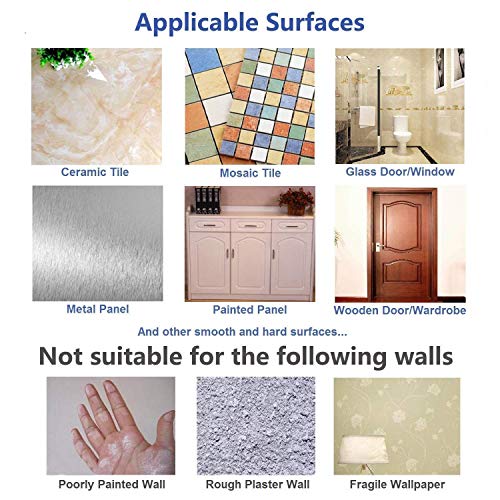 - استخدامات متعددة: يستخدم على نطاق واسع على الأسطح الملساء الصلبة مثل بلاط السيراميك وباب الثلاجة وخزانة الملابس والرخام والخشب والبلاط والمعدن والسيراميك والمرآة وفولاذ مقاوم للصدأ والأكريليك والبلاستيك والأسطح المعزولة وأكثر من ذلك. (لا يوصى بالجدار الليموني والجدار المطلي والجدران الجافة وورق الحائط مع ملمس لتجنب السقوط أو إتلاف الحائط).