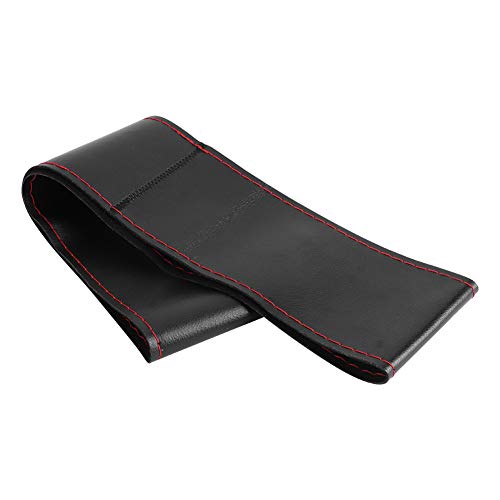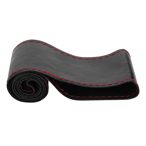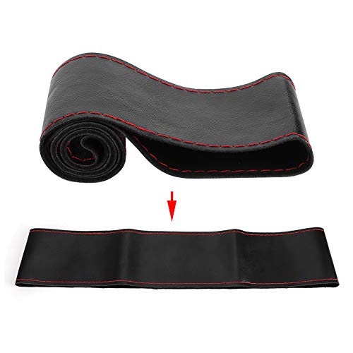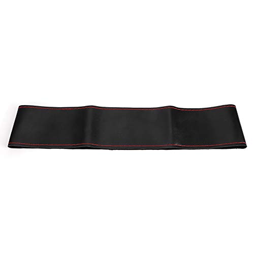 Aramox - غطاء جلد لطارة الدركسيون مقاس 38 سم، غطاء عجلة قيادة من الجلد برباط، مجموعة ابر خيط ذاتية الصنع لخط جانبي للخياطة اليدوية والديكور الداخلي للسيارة (أسود وأحمر)