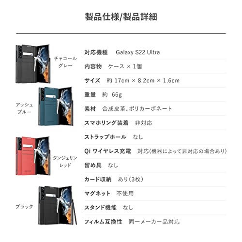 Araree - جراب موستانج دايري من اراري AR10-01458C لموبايل جالاكسي S22 الترا+ رمادي داكن، حافظة بسيطة، البولي يوريثين الحراري