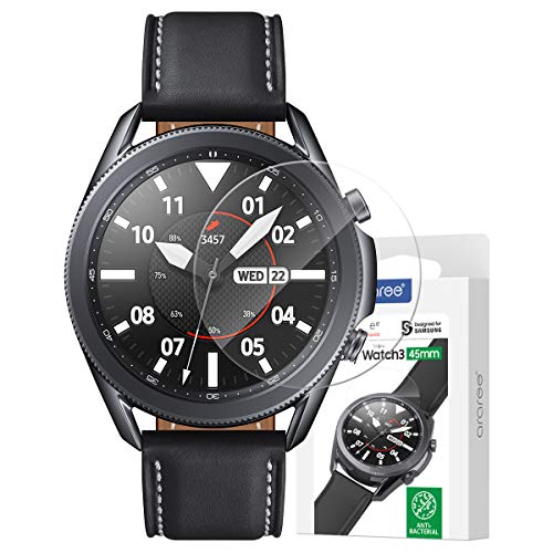 Araree - شاشة حماية من الزجاج المقوى المضاد للبكتيريا 45 ملم لساعة جالكسي ووتش 3 من الزجاج المقسى GP-TTR840KDATK من اراري، شفاف