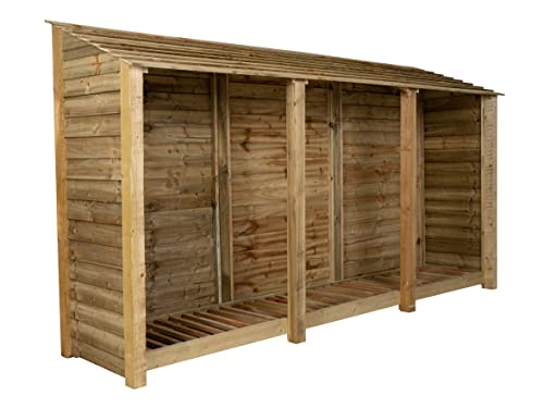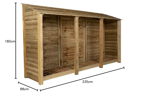 Arbor Garden Solutions - وحدة تخزين من الخشب بارتفاع 1.8 م لتخزين الحطب من اربور جاردن سولوشنز (العرض 3.35 م، الارتفاع 1.8 م، العمق 88 سم) لون طبيعي (بدون رف لمواد الإشعال)