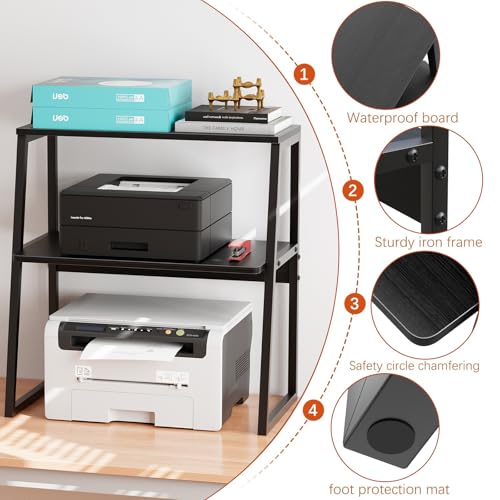 Arbuxzuy - حامل طابعة للمكتب من اربوكسزوي، رف طابعة مكتبي، رف مكتب من 3 طبقات لسطح المكتب، حامل طابعة كبير ارفف تنظيم المكتب للمنزل والمكتب والطابعة والفاكس والكتب، اسود