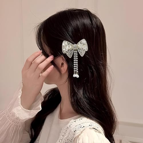Generic - مشبك قوس - اكسسوار شعر انيق بتصميم زهرة لامعة مع شرابة لؤلؤ صناعية، حامل ذيل حصان مثالي غير قابل للانزلاق للنساء والفتيات