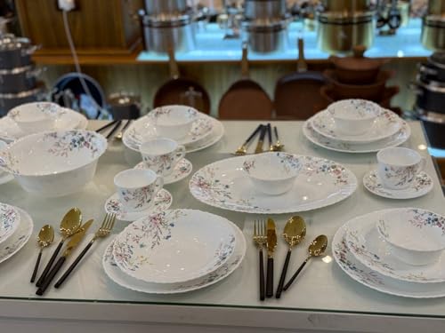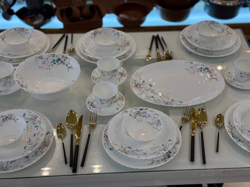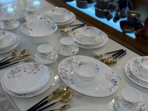 - ✅【خامة عالية الجودة】 مصنوعة من أجود أنواع الأركوبال المقاوم للكسر والصدمات والحرارة، مع تشطيب نهائي ناعم وأنيق يضمن الحفاظ على شكل الطقم ورونقه لفترة طويلة، ويقاوم البقع والخدوش، ليبقى الطقم محتفظًا بمظهره الجذاب طوال الوقت، ويجعل كل وجبة تجربة ممتعة بصريًا وعمليًا، ويعكس مستوى عالي من الجودة والاحترافية في كل قطعة تستخدمها في المطبخ أو الضيافة. ✨