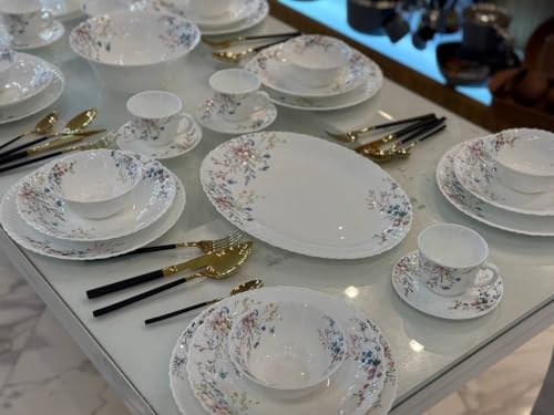 AREXOL - طقم سفرة أركوبال 38 قطعة فاخر مقاوم للكسر يشمل أطباق عميقة ومسطحة سلطانيات أكواب وصحون تقديم تصميم عصري عملي مناسب للميكروويف وغسالة الأطباق للاستخدام اليومي