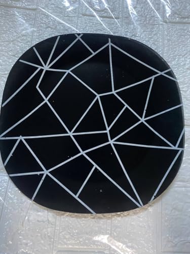 - تصميم هندسي عصري: يتميز بنمط خطوط هندسية بيضاء على خلفية سوداء أنيقة تضيف لمسة عصرية لطاولة الطعام