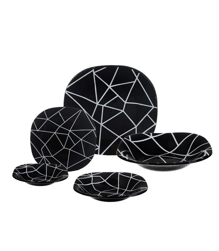 Generic - طقم عشاء اركوبيركس من الزجاج، تصميم هندسي أسود وأبيض، 20 قطعة