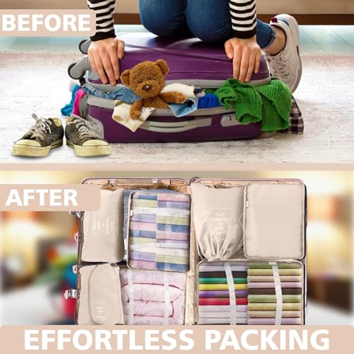 - ✅استمتع بكل لحظة: يجب أن يكون السفر ممتعًا، كما أن شنط تنظيم شنط السفر العملية الخاصة بنا للسفر تجعل الأمر كذلك. سواء كان الأمر يتعلق بالحفاظ على ملابسك النظيفة منفصلة عن الملابس المتسخة أو تنظيم أحذيتك أو أدوات النظافة أو الإكسسوارات الصغيرة أو حتى تصنيف متعلقاتك لأجزاء مختلفة من رحلتك، مع شنط تنظيم شنط السفر المربعة للتعبئة، فنحن نوفر لك احتياجاتك