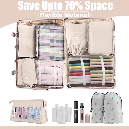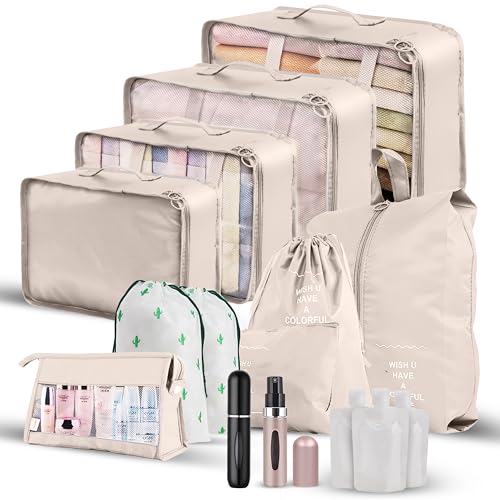 ArcShine - مجموعة تنظيم السفر متعددة الاستخدامات تشمل بخاختي عطر وشنط تعبئة مربعة وأكياس منظمة لشنطة السفر مخصصة للملابس والأحذية والاكسسوارات وهي مستلزمات سفر مقاومة للماء من ارك شاين™