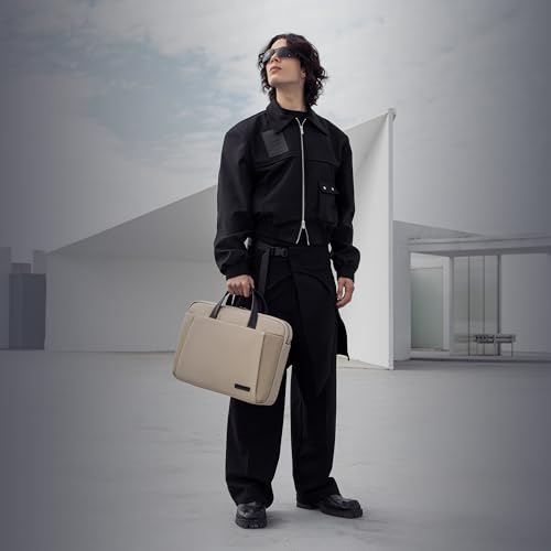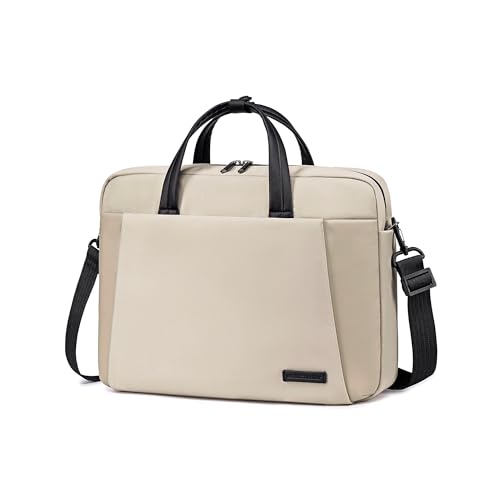 ARCTIC HUNTER AH - شنطة لابتوب 15.6 انش من اركتيك هانتر مصنوعة من النايلون المقاوم للماء مع بطانة مضادة للصدمات ومقبض من المايكروفايبر وحزام كتف قابل للفصل، شنطة عمل للرجال والنساء - GWB00848 - بيج