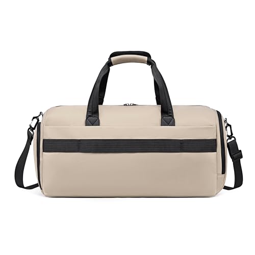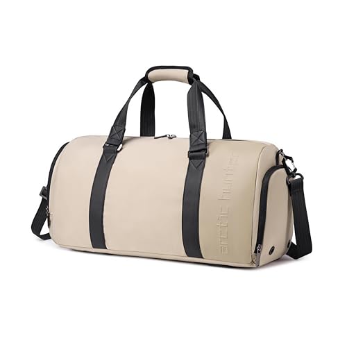 ARCTIC HUNTER AH - شنطة دفل للسفر وصالة الألعاب الرياضية سعة 30 لتر من اركتيك هانتر - شنطة نايلون طاردة للماء لعطلة نهاية الأسبوع مع جيب للحذاء وجيوب متعددة للرجال والنساء - حزام كتف قابل للفصل - LXB00834 - بيج