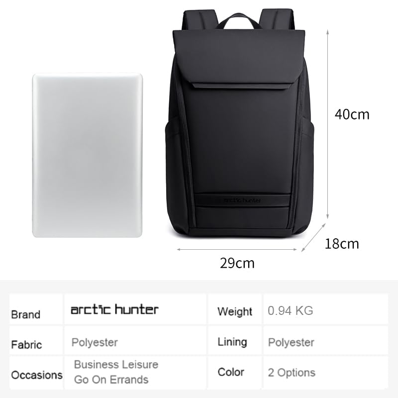 ARCTIC HUNTER AH - حقيبة ظهر للاب توب مقاومة للماء للجنسين 15.6 بوصة من البوليستر كتف للسفر للرجال والنساء ارتيك هنتر B00559-اسود، أسود، اه اركتيك هانتر عدد 1