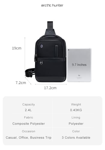 ARCTIC HUNTER AH - شنطة ظهر كروس بحمالة كتف متعددة الاغراض للرجال والنساء صدر للسفر والمشي لمسافات طويلة - XB000678 - اسود من اه اركتيك هانتر