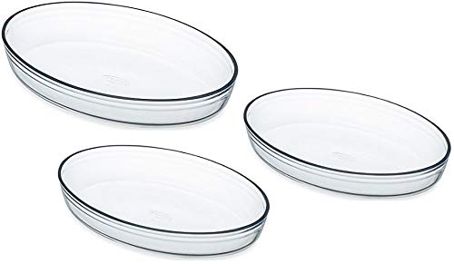 Arcuisine - طقم 3 صواني زجاجية بيضاوية لطهي الأطعمة بالفرن - (347BA/346BA/345BA)