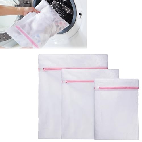 AREMOD - أكياس غسيل شبكية للملابس الخفيفة من اريمود، 3 عبوات من أكياس الغسيل الشبكية على شكل خلية نحل للغسالة لغسل اللانجري والسترات والملابس والشرابات (1 L، 1 M، 1 S)، البوليستر