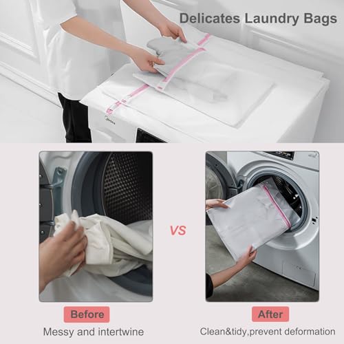 - 【الحماية والتنظيم】تم تصميم أكياس الغسيل الخاصة بنا لحماية الملابس من الالتفاف مع الملابس الأخرى داخل الغسالة. احمِ ملابسك الجميلة من التلف والاهتراء المفرط والتمزق أثناء الغسيل والتجفيف. تطيل عمر الملابس وتوفر تكلفة استبدال الملابس باهظة الثمن.