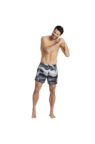 ARENA - شورت سباحة بوكسر للرجال شورت سباحة بدلة سباحة رياضية للرجال سريعة الجفاف برباط خارجي من ارينا لون رمادي متعدد مقاس سمول وميديوم