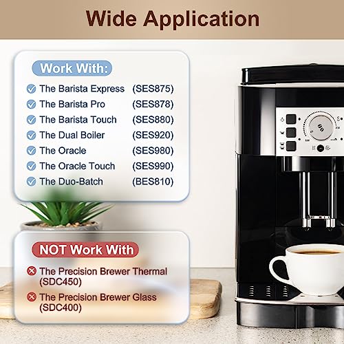 - الموديلات المتوافقة: تتوافق فلاتر المياه البديلة المتقدمة الخاصة بنا مع معظم ماكينات بريفيل. متوافق مع أوراكل تاتش (BES990)، أوراكل (BES980)، باريستا برو (BES878)، باريستا تاتش (BES880) والمرجل المزدوج (BES920). رقم القطعة هو #BES008WHT0NUC1. ملاحظة: يرجى التحقق من طراز ماكينة تحضير القهوة قبل الشراء للتأكد من توافق الفلتر.
