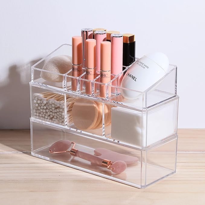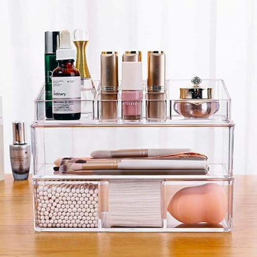 AREXOL - منظم مكياج أكريليك شفاف مكون من 3 أدراج من اريكسول بحجم متوسط لتخزين اكسسوارات ومستحضرات التجميل والمجوهرات للنساء في مصر