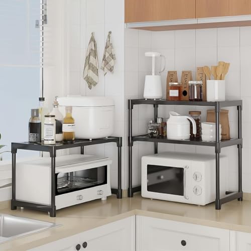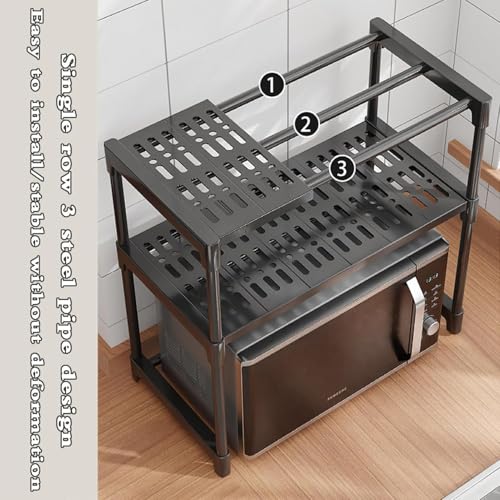 - 【أرفف ثابتة وآمنة】 تم تصميم كل رف لتحقيق التوازن والقوة، مما يمنحك راحة البال بأن الميكروويف والأجهزة الأخرى تبقى في مكانها بأمان أثناء الاستخدام.