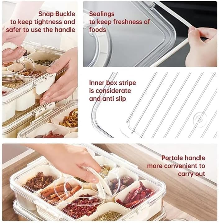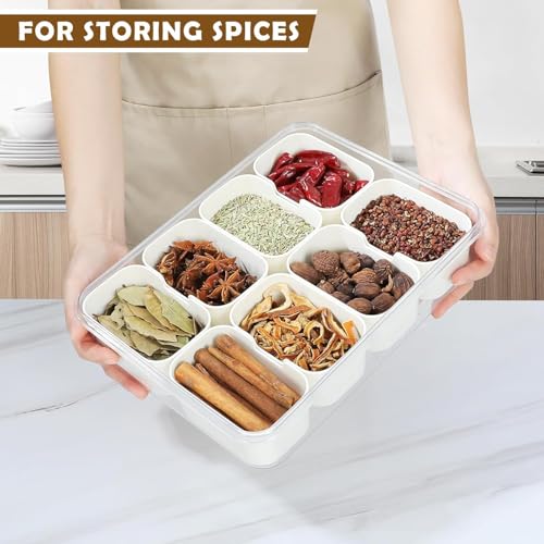 AREXOL - منظم تخزين توابل اكريليك شفاف مع 8 مساحات تخزين وغطاء محكم الإغلاق للأعشاب والوجبات الخفيفة والبذور والمكونات الجافة من اريكسول