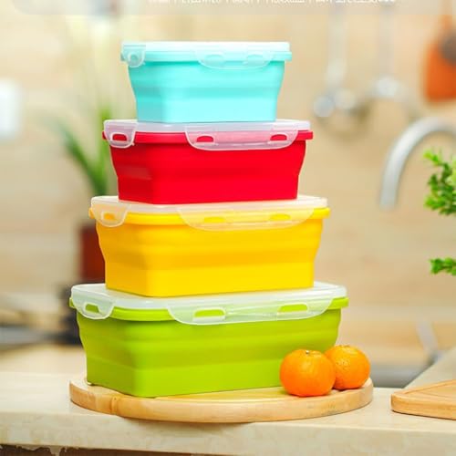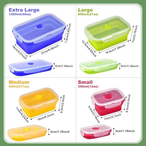 AREXOL - علب حفظ طعام من السيليكون قابلة للطي مع أغطية محكمة الإغلاق لتخزين وجبات الطعام آمنة للاستخدام في الميكروويف وغسالة الأطباق بسعات 350 مل و450 مل و800 مل و1.2 لتر من اريكسول، 4 قطع