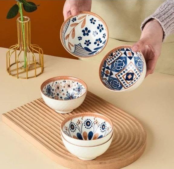 AREXOL - طقم بورسلين مزخرف مكون من 4 بولات بورسلين بطباعة اندلسية من اريكسول - للشوربة والسلطة والمقبلات - أواني مائدة لتناول الطعام في المطبخ أو استضافة رمضان