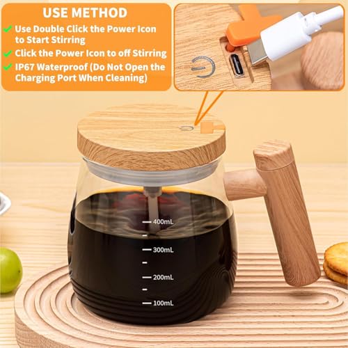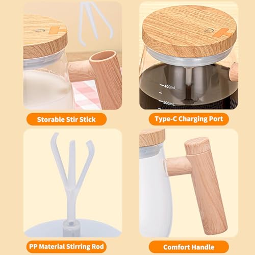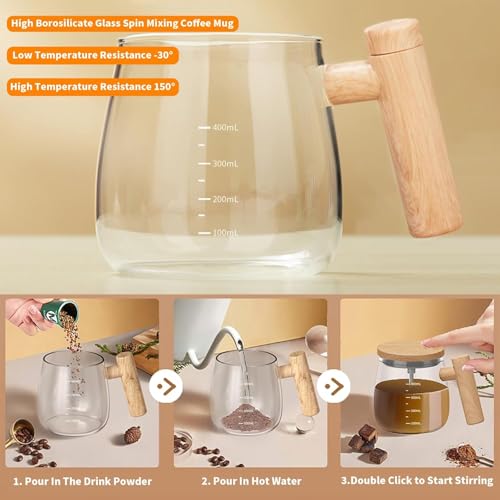 AREXOL - كوب خلاط كهربائي زجاجي من اريكسول مع ميزة التقليب الذاتي سعة 400 مل، كوب خلاط محمول للقهوة والعصير والشاي ومخفوق البروتين والمشروبات الساخنة أو الباردة