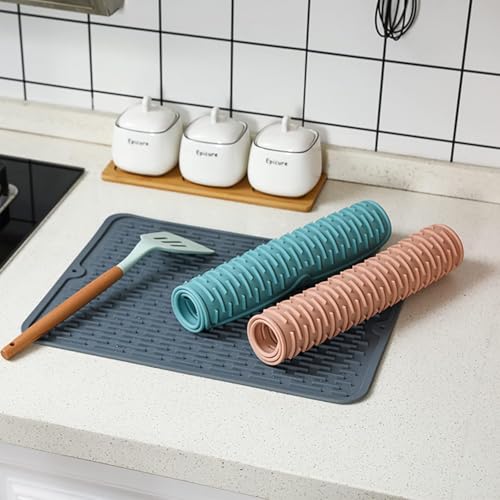 AREXOL - بساط مطبخ سيليكون مقاوم للحرارة من اريكسول مقاس 30 × 40 سم، وسادة تجفيف متعددة الاغراض مضادة للانزلاق للاطباق وصينية تصريف الحوض وحامل الاواني الساخنة وواقي سطح الطاولة