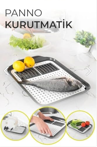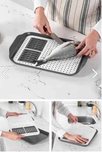 AREXOL - لوح تقطيع ومصفاة اطباق متعدد الاستخدامات 45 × 35 سم من اريكسول - بلاستيك تركي شديد التحمل لتقطيع وغسل وتصريف الفواكه والخضروات والاسماك